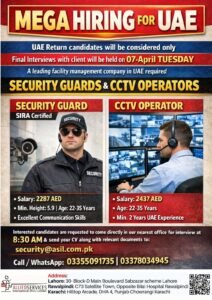 A reputed facility management company in the UAE is urgently hiring experienced candidates for security-related roles. This is a great opportunity for UAE return candidates to secure a stable job with good salary and benefits.