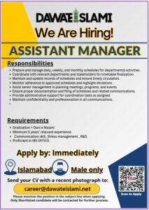 Dawat-e-Islami is Hiring – Assistant Manager (Islamabad) Full Time NEW