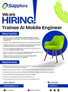 Sapphire Consulting Services is excited to announce a career opportunity for passionate and tech-driven individuals to join as a Trainee AI Mobile Engineer. This role is perfect for fresh graduates and early-career professionals who want to build a future in AI-powered mobile application development.